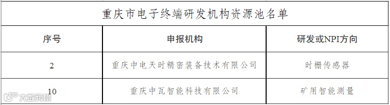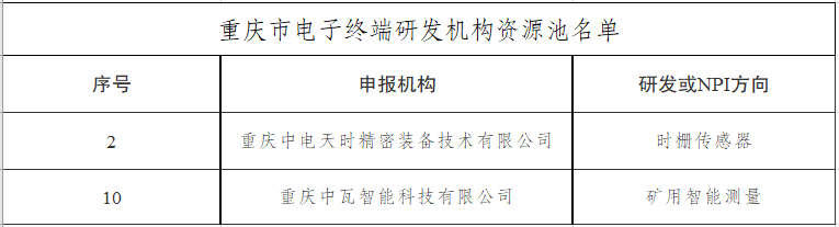 根据《关于征集电子终端研发机构形成资源池的通知》(渝经信通信〔2023〕7号),经机构自主申报及专家评审,将英业达(重庆)有限公司、重庆紫光华智电子科技有限公司、北京理工大学重庆创新中心等机构纳入电子终端研发机构资源池名单。园区企业中电天时、中瓦智能上榜。