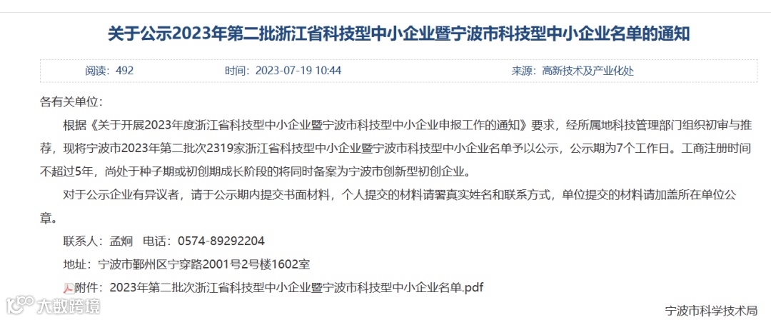 近日,宁波市科学技术局公布了《2023年第二批浙江省科技型中小企业暨宁波市科技型中小企业名单》,经所属地科技管理部门组织初审与推荐,启迪科技园(宁波)18家园区企业榜上有名!