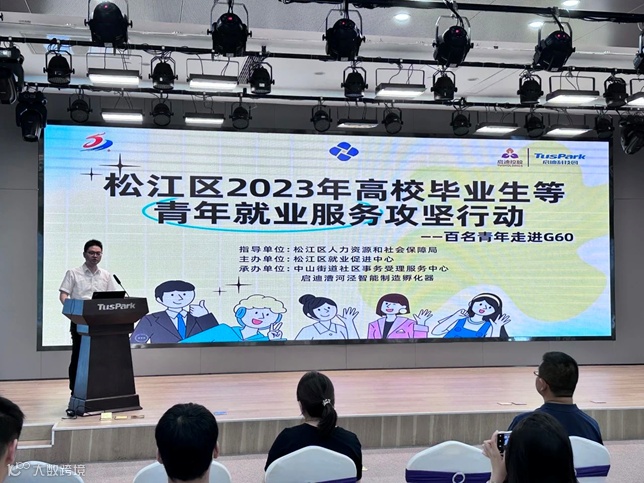 7月19日,松江区就业促进中心开展“松江区2023年高校毕业生等青年就业服务攻坚行动”系列活动之“百名青年走进G60”,区就促中心副主任袁琪、彭晓镝共同带领30余名应届、往届高校毕业生走进启迪漕河泾智能制造孵化器。