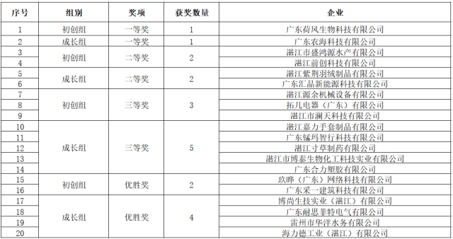 今年7月,湛江组织初赛,由省赛组委统一组织专家登录大赛官方平台开展网络评审,评出55家企业晋级半决赛,其中成长组34家,初创组21家。8月上旬,湛江组织半决赛,赛场上,参赛选手激情展示,展示创业者敢“试”敢“拼”敢“闯”的风采,彰显创业者拼搏争先、敢创大业的精神面貌,选手赛出风格、赛出水平。