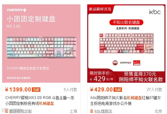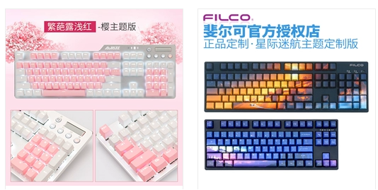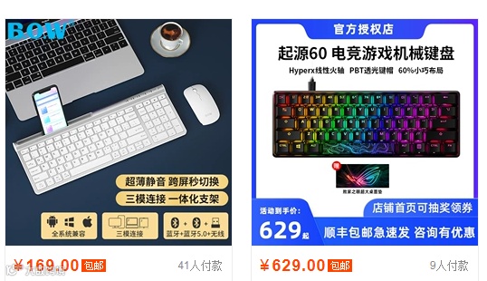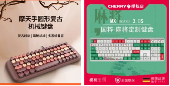 例如左边的键盘有:定制键盘、键盘、少女心这几个关键词,小明身上也有:定制键盘、键盘、少女心这几个标签,而小红的标签是:键盘、定制键盘、机械键盘这几个标签,那么在键盘这个相同的关键词之下,被推荐给小明的几率就会比小红更大。