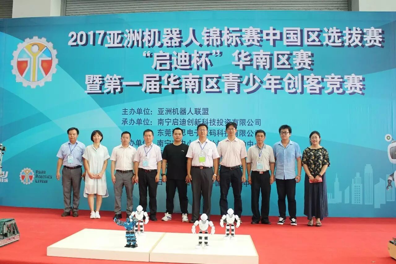 8月12日至14日,2017亚洲机器人锦标赛中国区选拔赛——“启迪杯”华南区赛在南宁国际会展中心隆重举行。本次赛事由亚洲机器人联盟(AsianRobotics League)主办,广西启迪、东莞博思电子数码科技有限公司联合承办。广西启迪副总裁曾庆、亚洲机器人联盟中国区主席曾庆龙、广西科技馆青少年项目科长韦文潮等领导应邀出席。