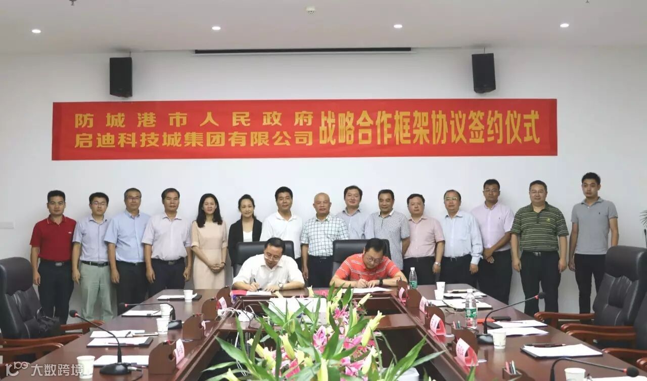 签约仪式前,蹇兴超热烈欢迎启迪科技城集团王鼐一行,并详细介绍了防城港发展情况。他指出,防城港虽然是我国比较小的地级市,但水陆两路直达东南亚,区位十分优越。近年来,防城港市全面推进与东南亚国家的互联互通建设,打造面向东盟海陆互通的交通大动脉,建成由航运、高速铁路、高速公路、民用航空为骨架的集疏运体系,形成联通西南、中南、港澳和东盟的便捷出海通道,集信息交易、物流服务、综合服务等功能于一体,成为辐射西南、中南地区和东南亚国家的区域性物流信息交易中心。