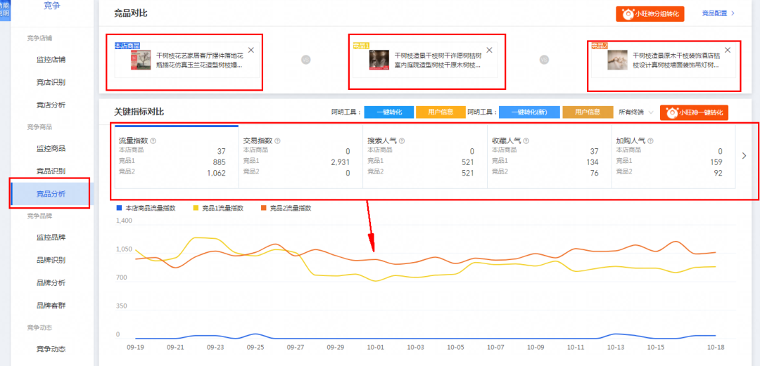 如果我们自己的商品数据表现一般,而竞品的数据表现明显优于我们的时候,我们可以根据竞品的每一项数据指标进行详细的分析,在进行具体的优化。