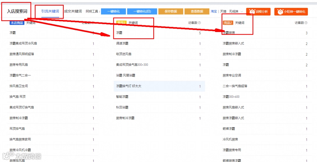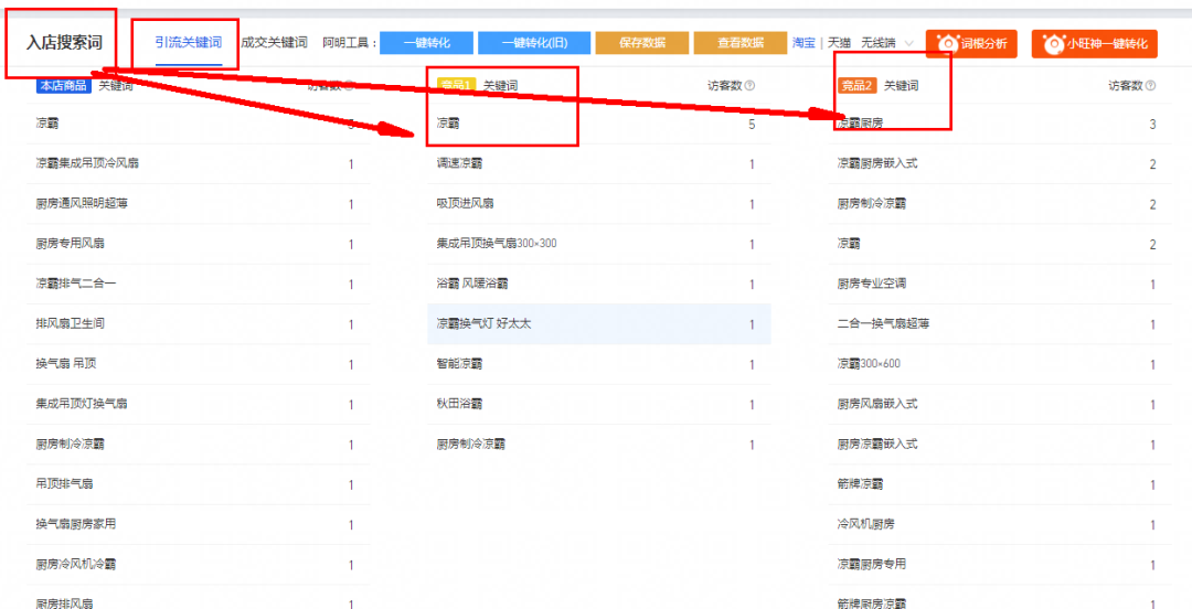 除了趋势之外我们还需要关注竞品的引流关键词与我们的词是否有共性,有时候可能会出现同类商品主打人群不同的情况,如果对方用的词与我们的目标人群差异过大,也不适合选定为竞品。