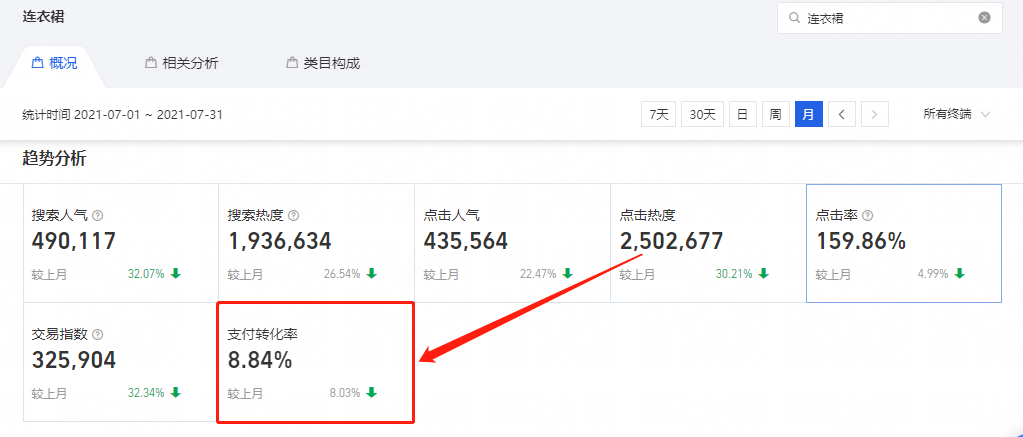 具体类目需求程度如何,我们可以从类目的转化率来看。