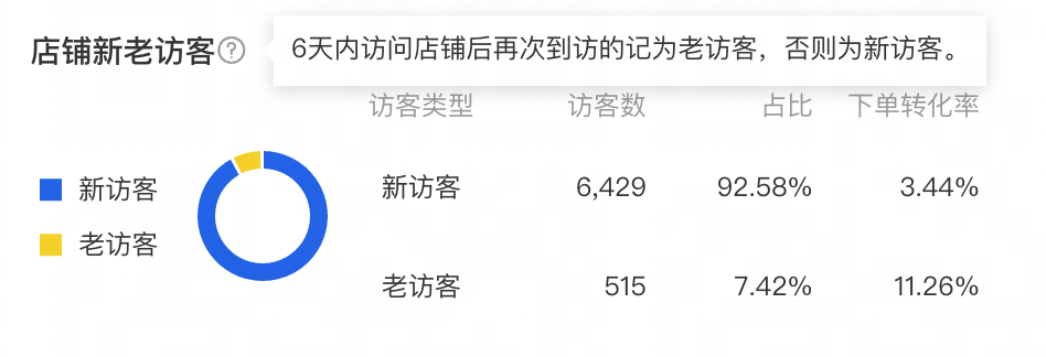 这里的老访客不是老客户,老访客指的是在6天内再次到访店铺的访客叫做老访客。