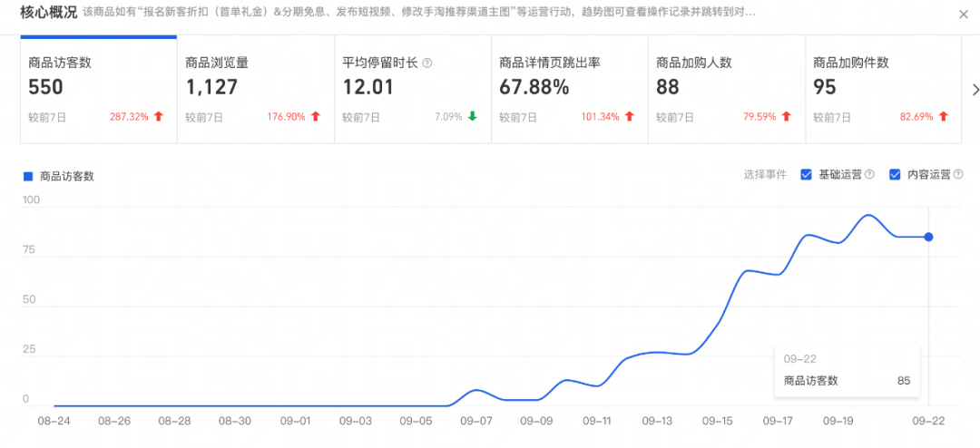 比如在对这一批上新款式中的某几款款式反应较好后,我们再针对这几款来测试,最终得出一个潜力较高的款式来做销量的拉升,以实现搜索流量的拉升。