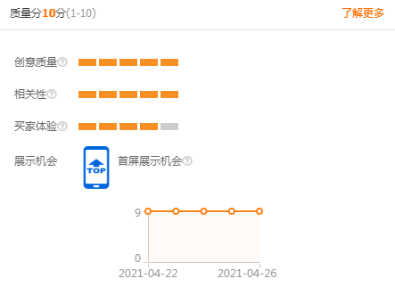 简单来说就是点击率、点击量,这也是我们主要去优化的地方。很多商家知道质量分要优化点击率,但却常把点击量给忽略了,其实这两者是相辅相成的,两者兼备才可以快速拉升质量分。