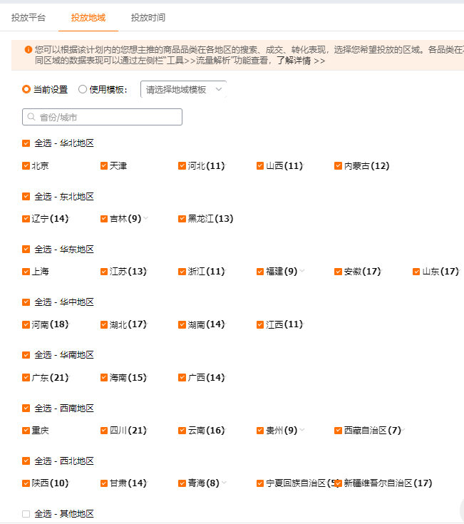 测试地域,除了一些偏远地区,和我们不做的地方,剩下的都要进行一个均匀投放测试。