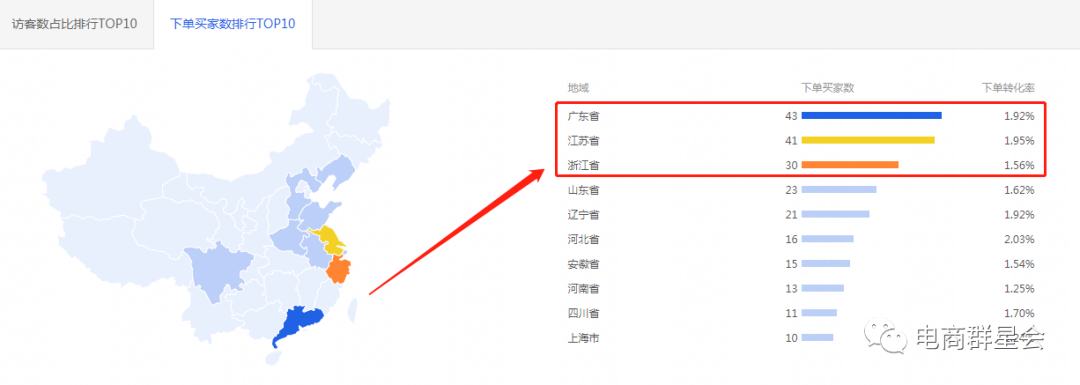 在地域方面,与我们前期所预想的店铺人群画像相符,主要是以一二线,以及经济发达地域的人群为主。