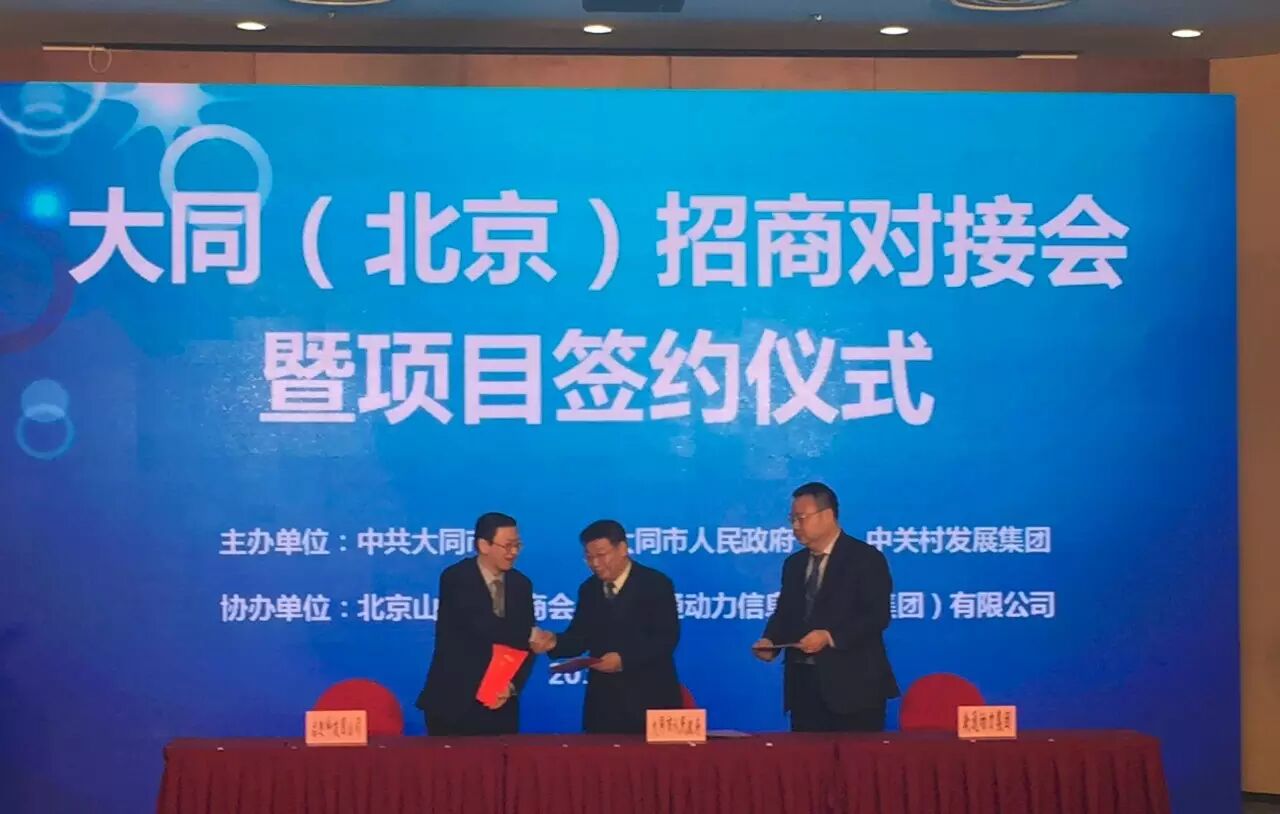 1月16日,大同(北京)招商对接会暨项目签约仪式在京举行,会上,启迪科技园运营管理公司与大同市政府签署战略合作协议。会议由大同市委书记张吉福主持。山西省副省长王一新,北京市政府副市长隋振江等领导出席会议并分别致辞。