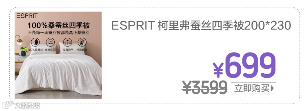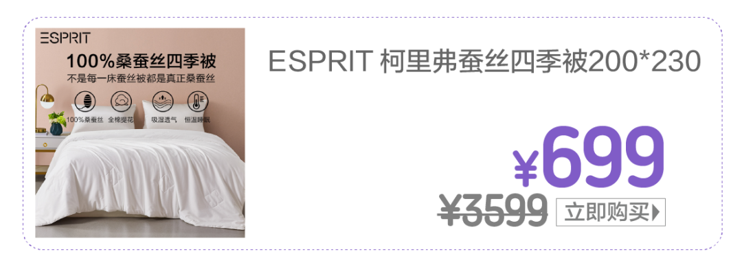 Esprit桑蚕丝夏被;日常售价299; 秒杀259