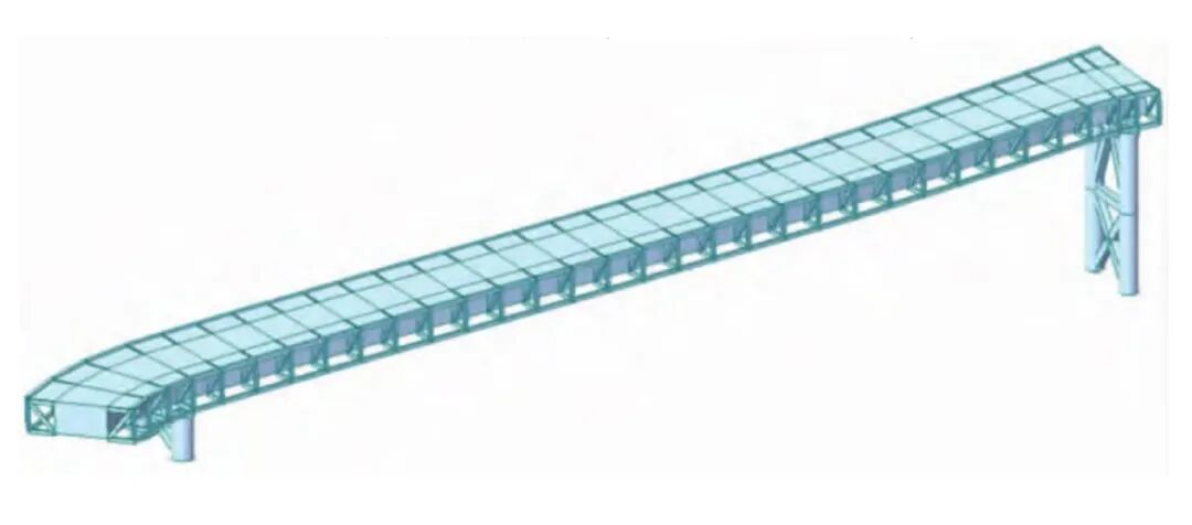 设计保证了荷载重、跨高比大的连桥的结构整体刚度和稳定性。对于自振频率的控制,提高了桥面行走的舒适度。