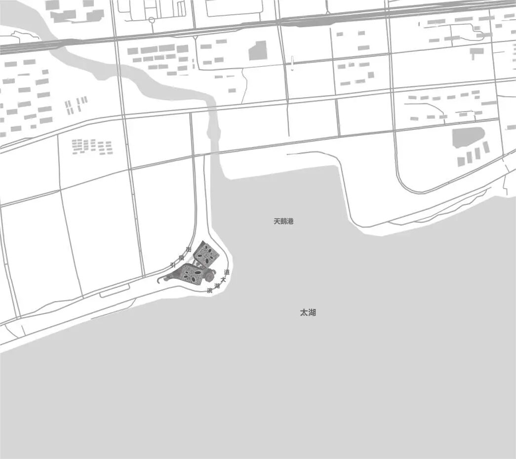 苏州吴中区太湖新城的核心区域城市轴线,以名为“天鹅港”的城市水湾为南终端,再向南延伸,便是开阔的东太湖水面。“天鹅港”的西岸,滨湖绿带的转折处,有一个伸入水域中的半圆形地块,它成为了橙天嘉禾360剧场的建设选址地。