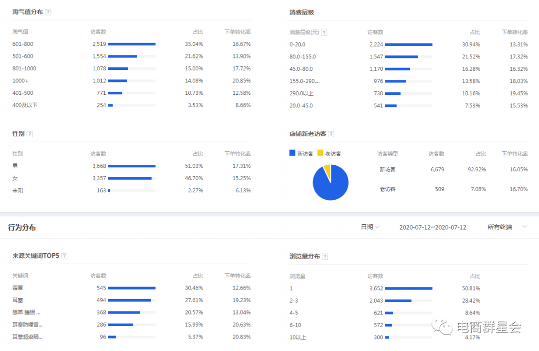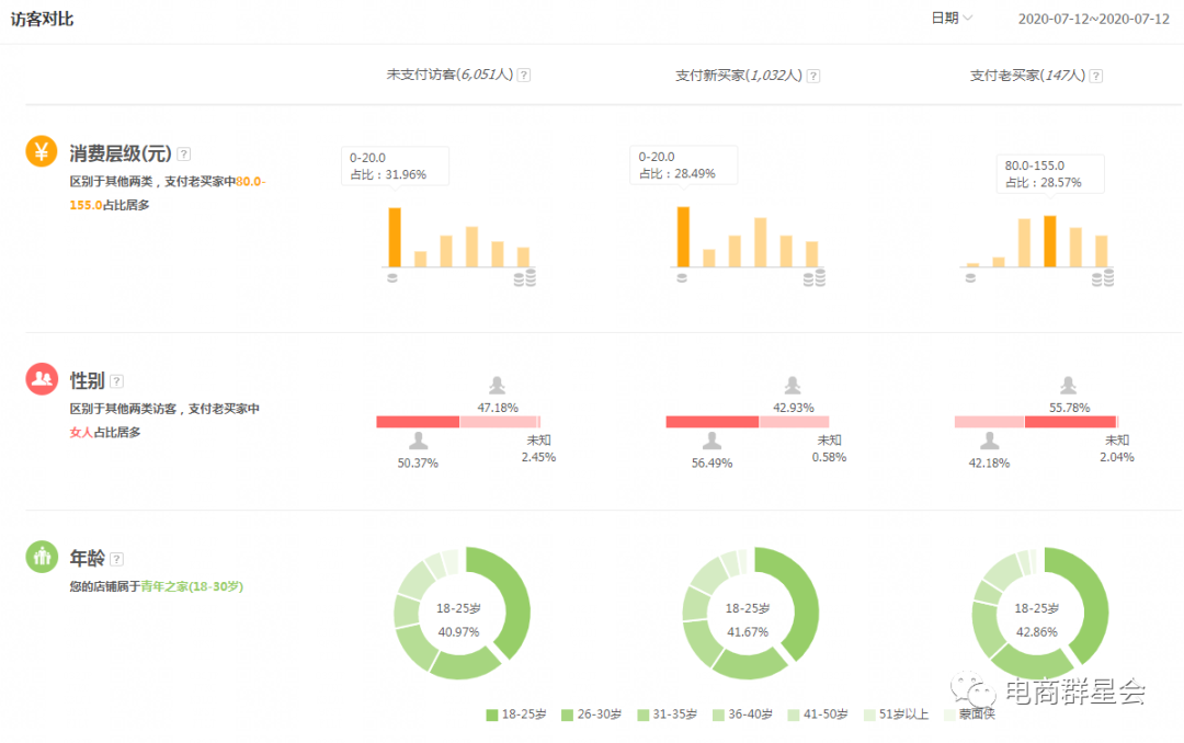 (3)性别:性别这块,如果进店占比有差距,但下单转化率没有明显差别,也不用刻意去拉某个性别的人群的,没有谁规定男生不可以买口红。只要是进入店铺并购买的客户,都是我们的精准客户。