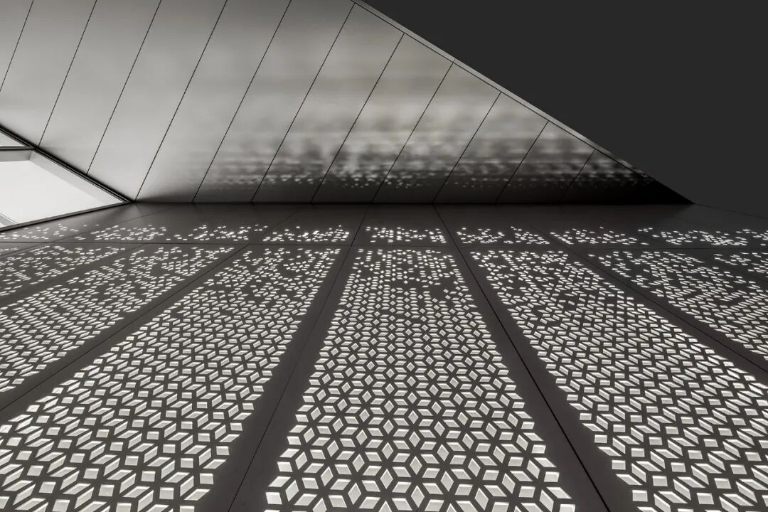 照明延续了“苏而新”的概念,汲取建筑的苏式特征,用灯光语言进行深入演变,让苏式元素与多元空间完美诠释结合,从细节元素入手,将这座现代高楼与浓浓的苏式古韵相融合,重点凸显建筑特有的人字墙,灰瓦屋面、花窗等苏式建筑元素,渲染富有意境的“苏式美”,光影间,以匠人之心,洗尽浮华之气。