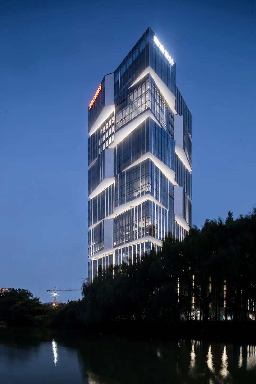 启迪设计大厦坐落在苏州工业园区中央河景观轴线上,设计理念古今呼应,作为新时代建筑夜景标杆之一加入城市形象轴队列。