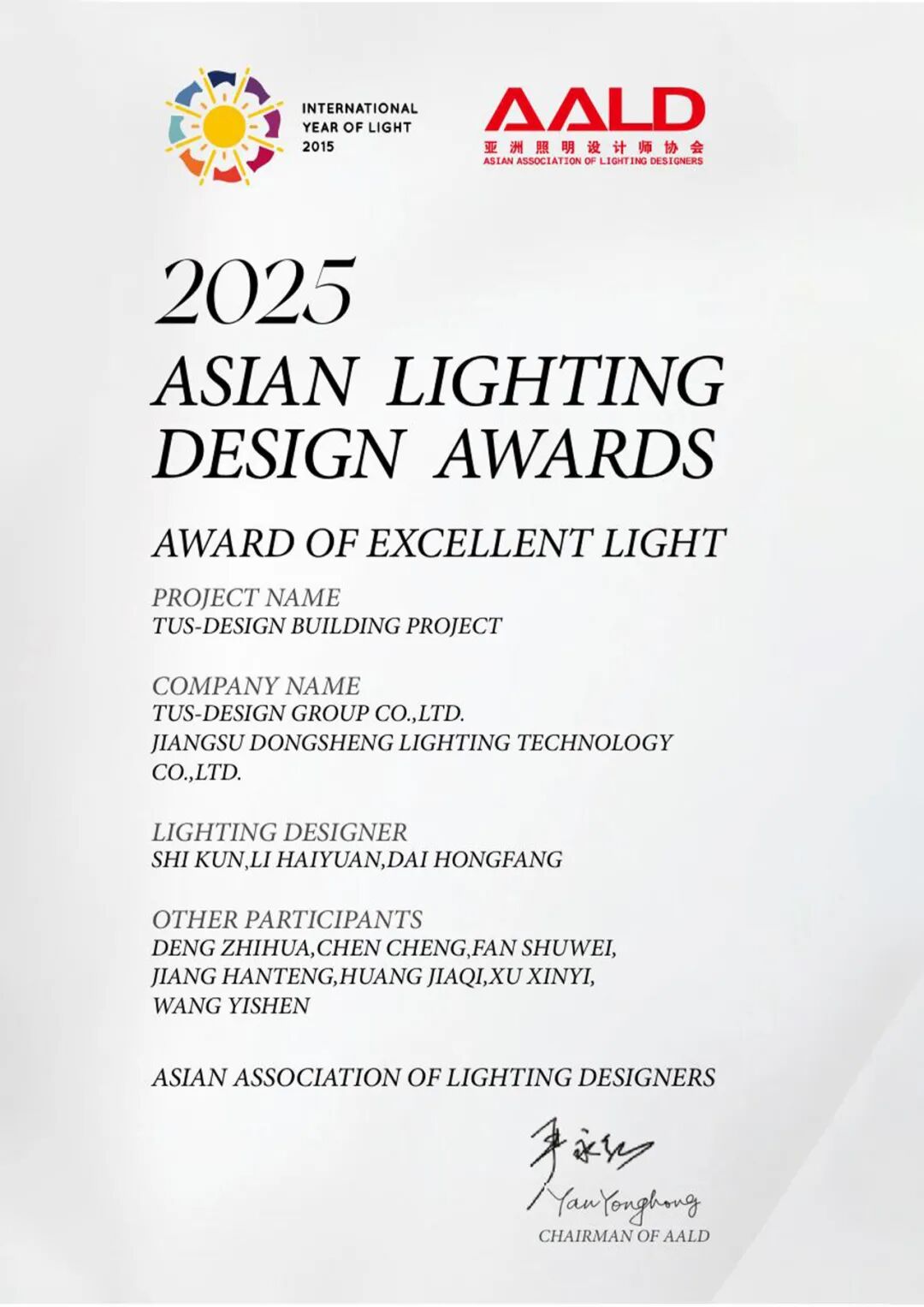 由亚洲照明设计师协会(AALD)主办,旨在表彰亚太地区卓越的照明设计项目。奖项聚焦创新性、节能环保与文化融合,涵盖建筑、景观、室内照明等领域,是亚洲最具影响力的照明设计奖项之一,每年吸引众多国际顶尖设计团队参与。