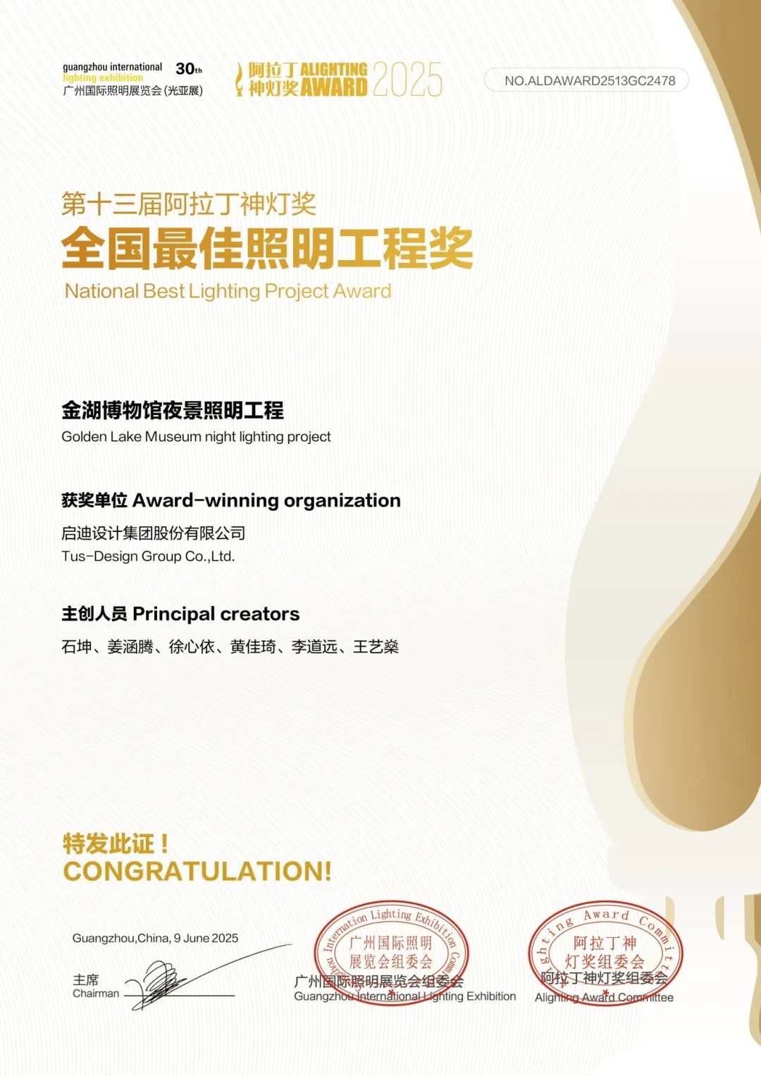 接连荣膺多个照明设计重要荣誉,是对启迪设计照明团队专业能力的充分肯定。未来公司将以此次获奖为新起点,持续探索光与建筑的无限可能,用匠心设计点亮更多城市地标,为夜间景观营造贡献更多启迪设计智慧。