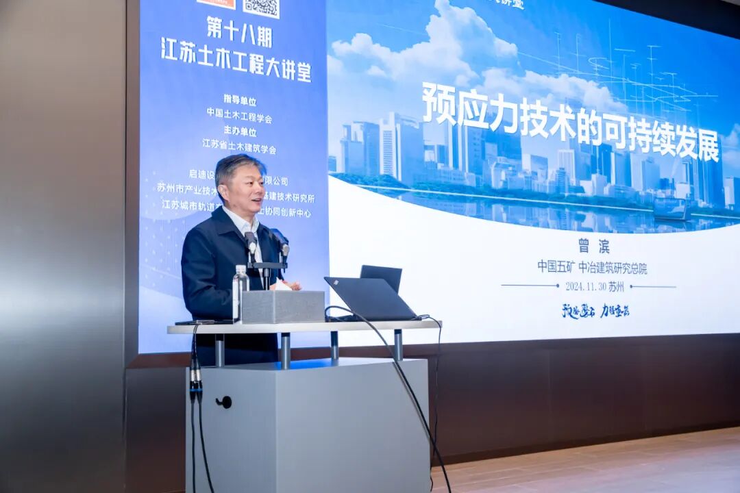 曾滨院士从预应力的结构工程现象及成因解构、时空演化和机理解释、结构服役安全等方面讲解了预应力的作用。他指出,预应力在我国工程方面取得了巨大成就,也将继续为我国高质量发展提供先进结构解决方案。