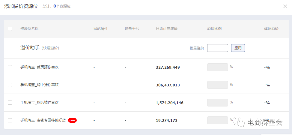 一个计划中3个主要位置可以同时投放,但是溢价可以分高低(购后猜你喜欢最高、购中猜你喜欢其次、购前猜你喜欢最低),位置溢价起步10%,在流量不足的时候可以逐步提高溢价获得更多曝光。