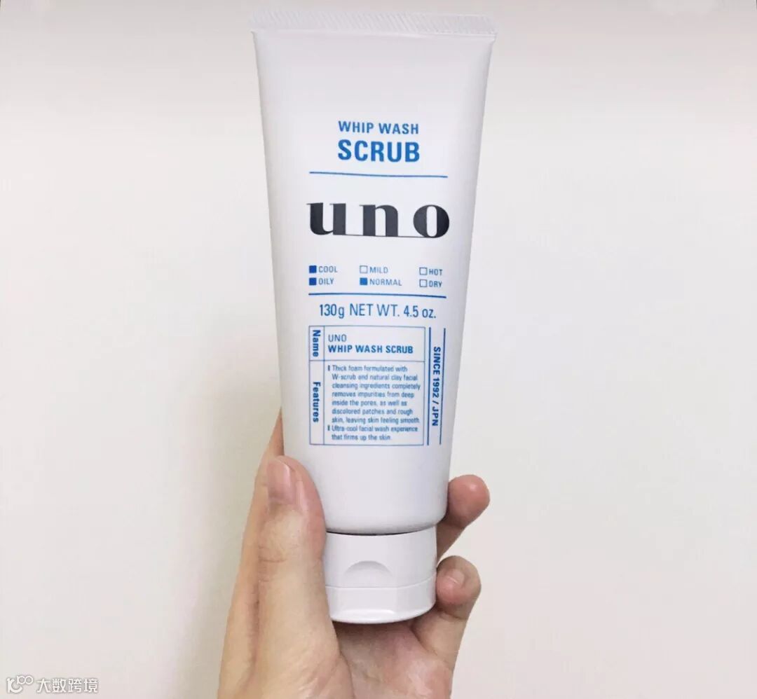 日本的人气王,性价比也超高,蓝色是深层磨砂洁面乳,含有磨砂颗粒和薄荷成分,还有天然泥洗净成分,有效洗出毛孔中的污垢,适合夏天用。