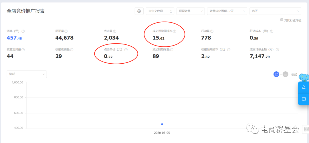 就像上图中,这个计划里我的点击单价只要0.22元,通过457元的直通车费用实现了7147元的转化,ROI做到了15.62,这样的数据不香吗?