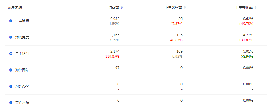 ,这肯定是不正常的。并且无论是付费流量还是免费流量,转化率都很低,尤其是付费流量,