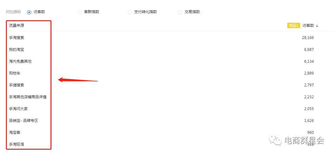 在竞品的流量来源中,我们可以看到竞品的主要流量来源是从哪个渠道进来的,主要是做付费的还是免费的,是做首页流量、搜索流量还是直通车流量等。