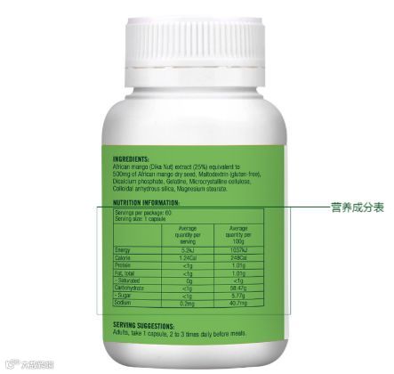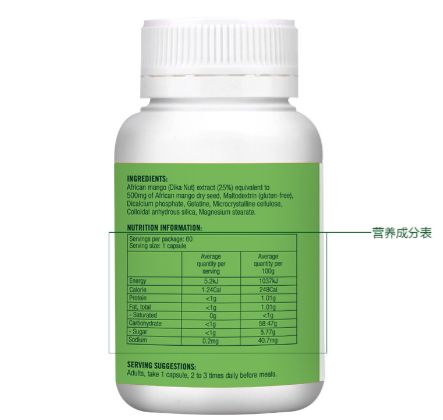 高浓度功效成分,含量高,效果更好,每粒含500mg非洲芒果籽干,源自天然非洲热带雨林芒果树,优选原料,天然植物提取。
