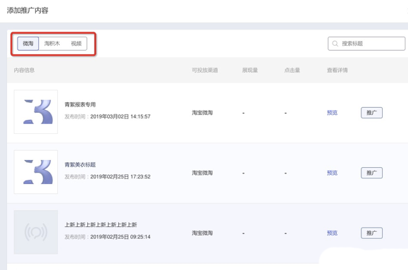 图文可选微淘、淘积木以及短视频作为推广内容。
