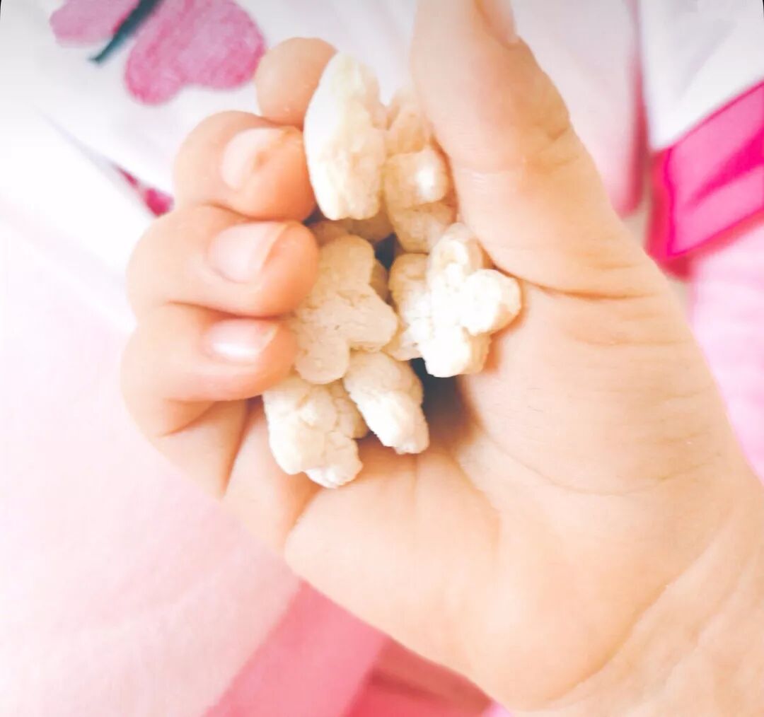 甜馨同款,可爱的星星造型让宝宝自己抓着吃,锻炼宝宝的手指灵活能力,也可以享受美味哦。泡奶喝也是个好搭配,不上火。