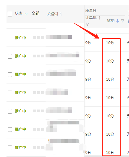 直通车要想拖价,一定要建立在高权重的基础上,最好实现所有关键词全十分,很难完成的话可以允许少量的9分词。