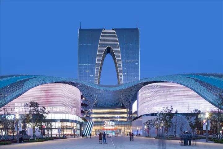此次入选詹天佑奖的苏州中心项目,位于苏州市域CBD核心位置,总占地面积16.7公顷,总建筑面积113万平方米,其中地上建筑面积69万平方米、地下建筑面积44万平方米。项目融地上建筑与地下空间于一体,无缝对接轨道交通一、三号线,是国内首批“站城一体”的超大型城市共生体,也是苏州体量最大的商业综合体。赋予了建筑新时代的苏州园区美感,可谓是苏州这座城市的中心。