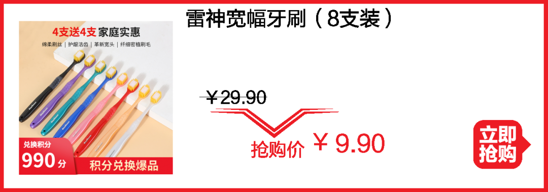 清洁大作战>雷神牙刷8支¥9.9;KONO洗护套装49;芝芙莲内衣洗涤剂¥29.9!
