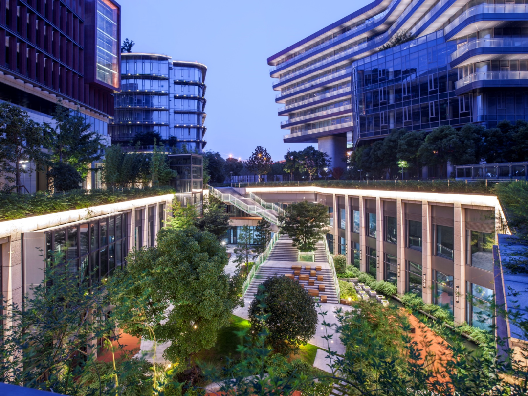 最后,为了鼓励健康高效的行为方式,在路径上借鉴了苏州园林中“步移景异”的手法,在裙房,屋顶花园和垂直院落中设计各种不同的开敞楼梯到达各楼层,解决了高层办公建筑中垂直交通拥挤的问题。