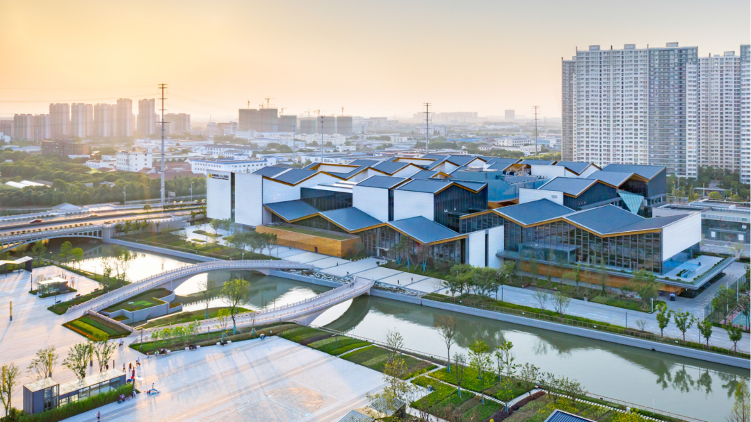 旧城更新已进入小规模常态化状态,不应脱离城市脉络和肌理。应时刻关注与城乡环境的融合,关注节能和生态问题,也需在实践绿色理念的同时,尽可能采用适宜技术,避免过度依赖高新技术和材料。我国传统建筑实践中的一些做法仍有值得借鉴之处,其营造法理体现了朴素的生态观,也符合绿色建筑评价标准,而“庭与院”则作为百变不离其宗的建筑与环境融合的要素始终有所体现。因此,中国院落环境空间的特质是探索现代建筑中国文化体现的一个取之不尽的源泉。世博文化中心(梅赛德斯奔驰文化中心)与滨江环境空间的融合、虹桥商务区核心区8号地块宜人的环境街区等创作均以此为出发点。