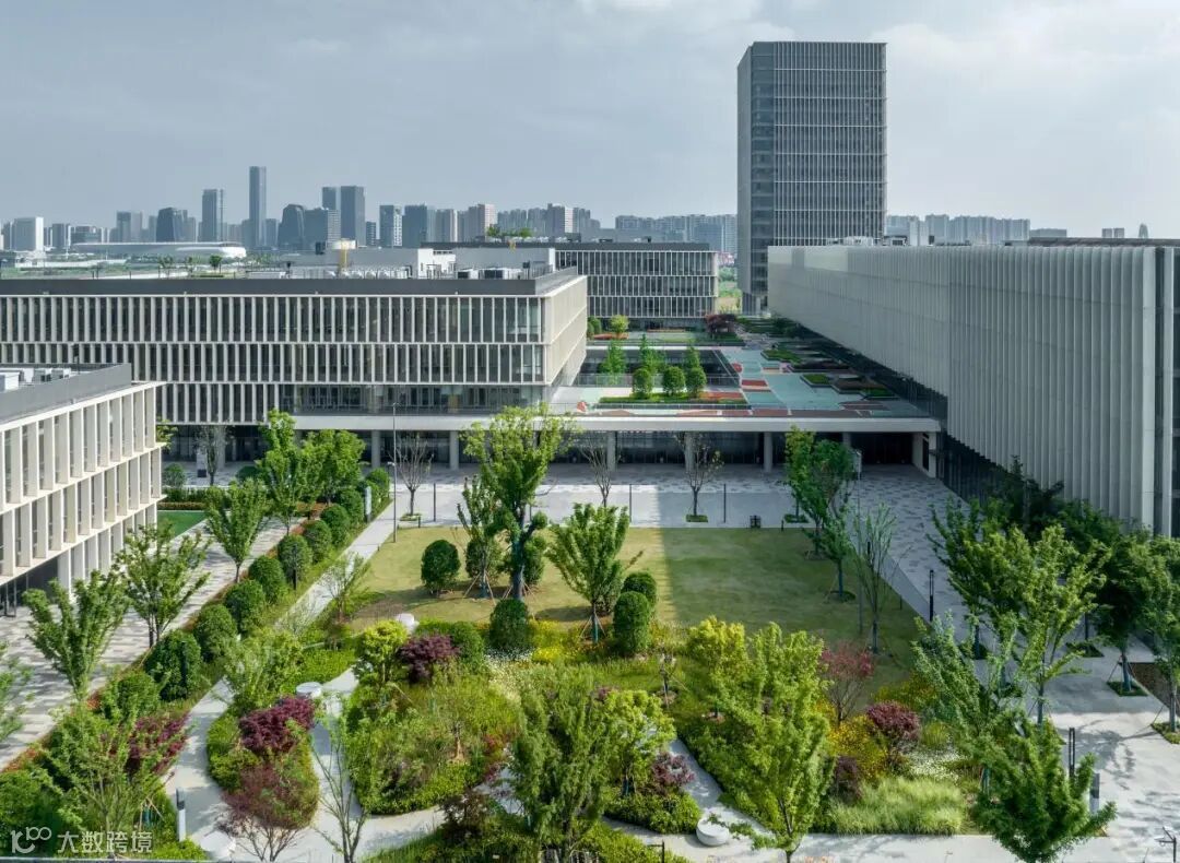 设计以方体的庭院建筑,空中花园景观,暗合中国古典建筑风格。高低错落、层层递进的空间布局, 高度借鉴了江南一带建筑群排布,与苏州文化一脉相承。同时也象征着荟同不断追求卓越,励志成为苏州市高质量、国际化教育事业标杆的愿景。