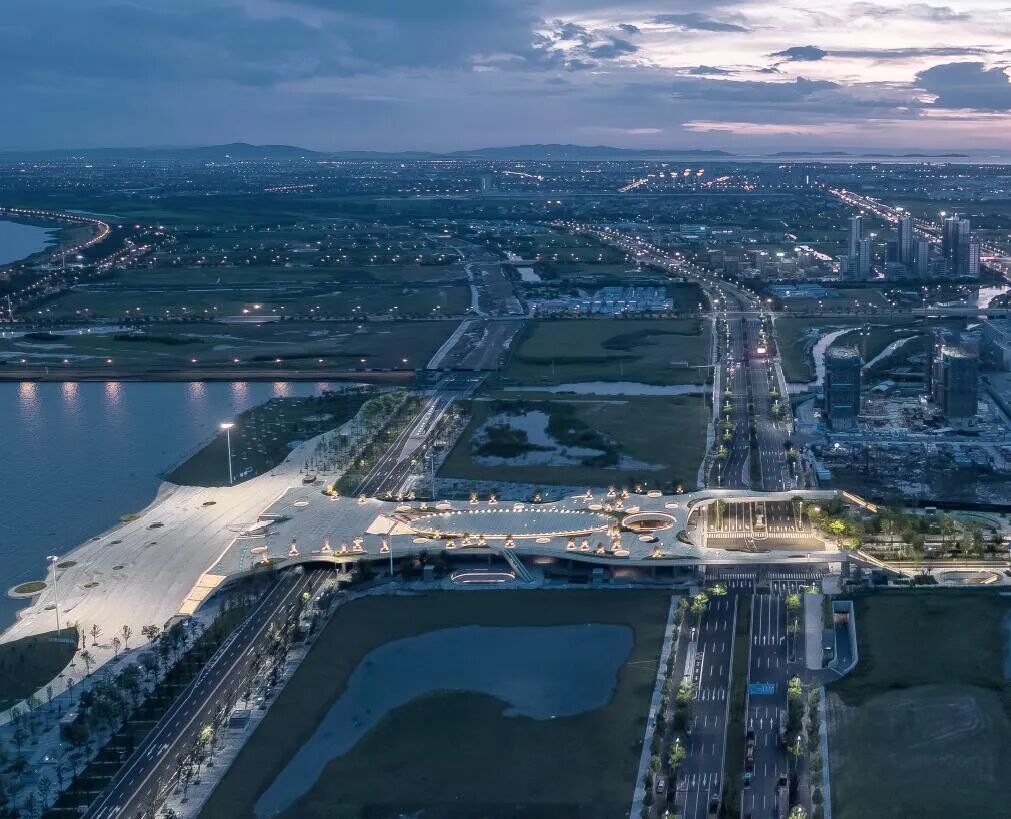 项目位于苏州太湖新城中央商务区,以轨道交通4号线苏州湾北站为中心的南北长900米,东西沿湖畔长500米。包括湖畔的整体规划以T型平面的地下空间为主的公共区域开发项目。以眺望太湖的平台和湖畔广场为城市中心,车站、各街区和湖畔通过地下一层的商业街道网络相连接,形成城市中心轴。地面设置观景平台、行人绿化带,未来还将设置LRT轨道用绿化带。