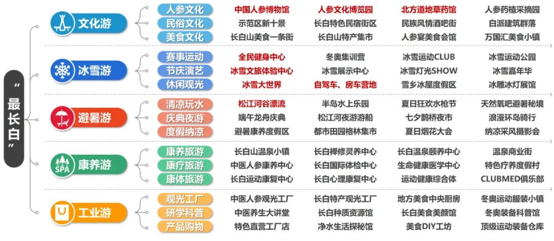 以人参为主线,深入挖掘文化内涵,结合“文化游、冰雪游、避暑游、康养游和工业游”设计多元主题旅游产品,构建全季全时全域旅游新格局。