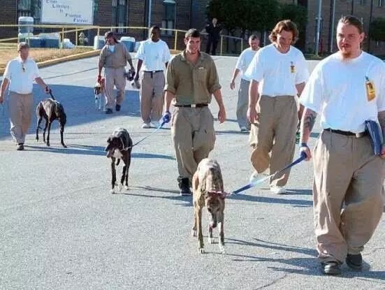 许多罪犯在看到灰狗那一刻,眼神忽然柔和了下来。一位平时凶神恶煞的黑老大,看到面前的灰狗时,不禁喃喃地说:“我能抱一下它吗?我已经31年没有抱过狗了。”