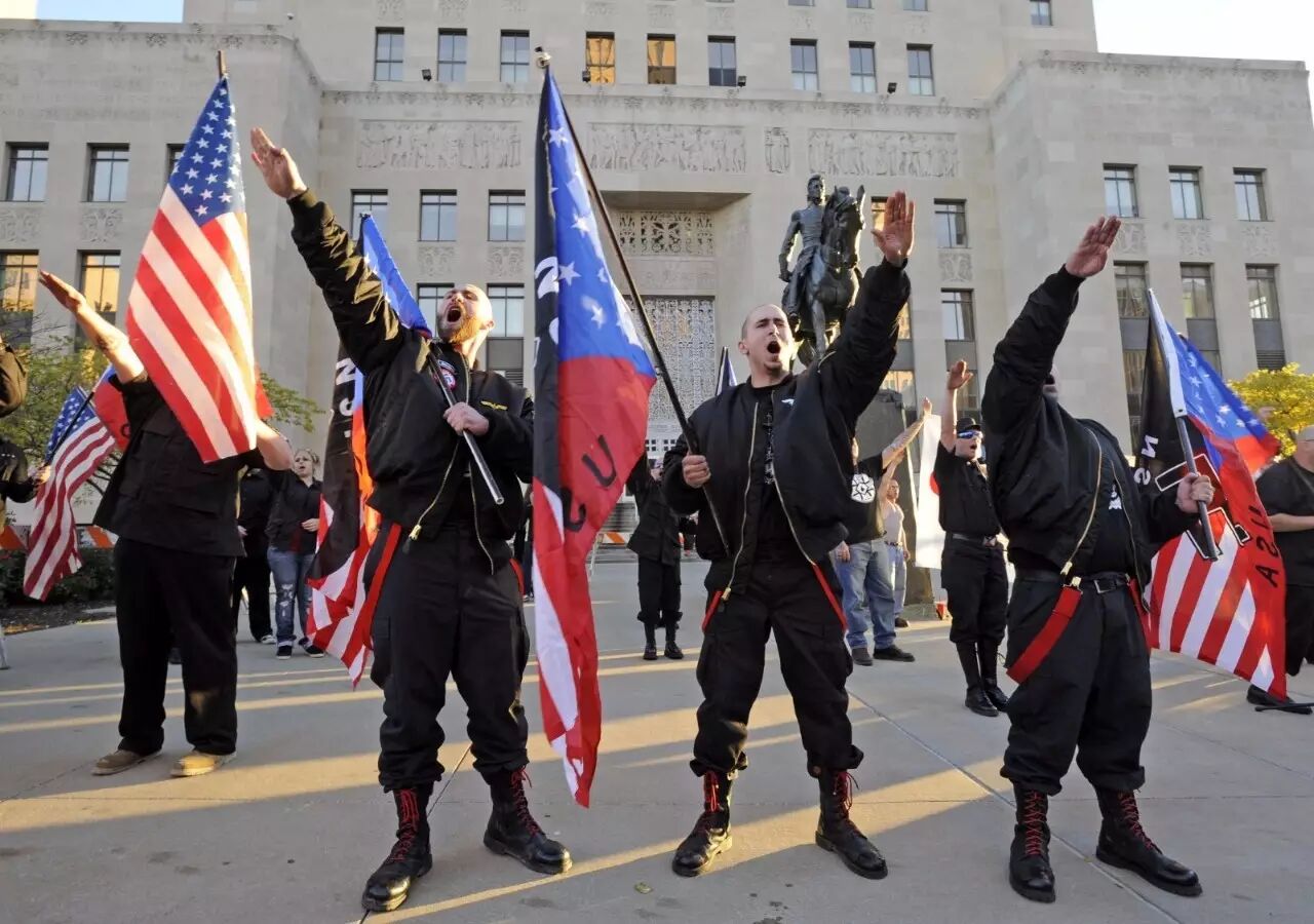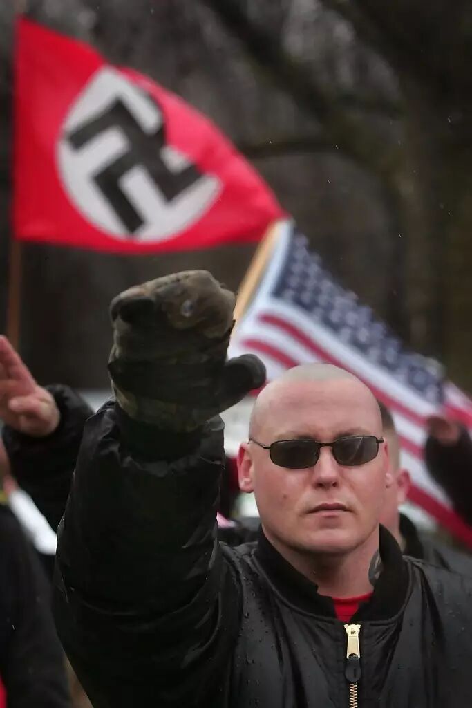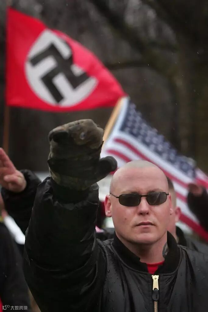 新式纳粹团体在世界各国正在蔓延开来,上图为美国的新纳粹团体在集会。