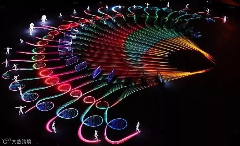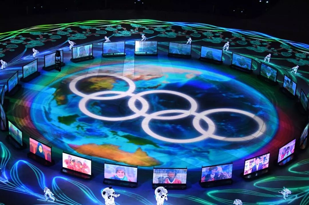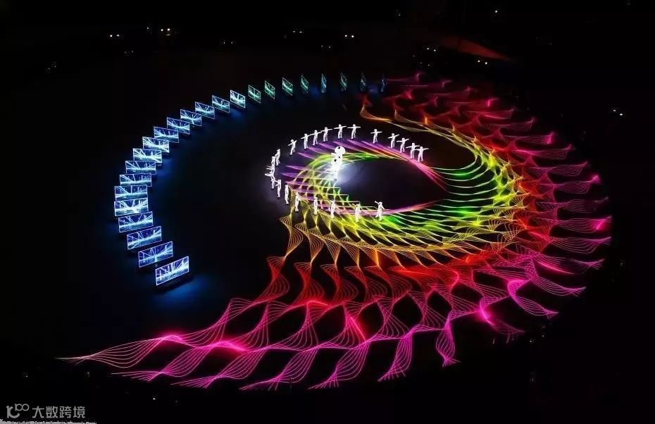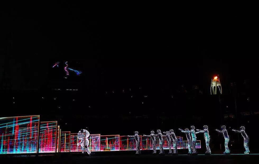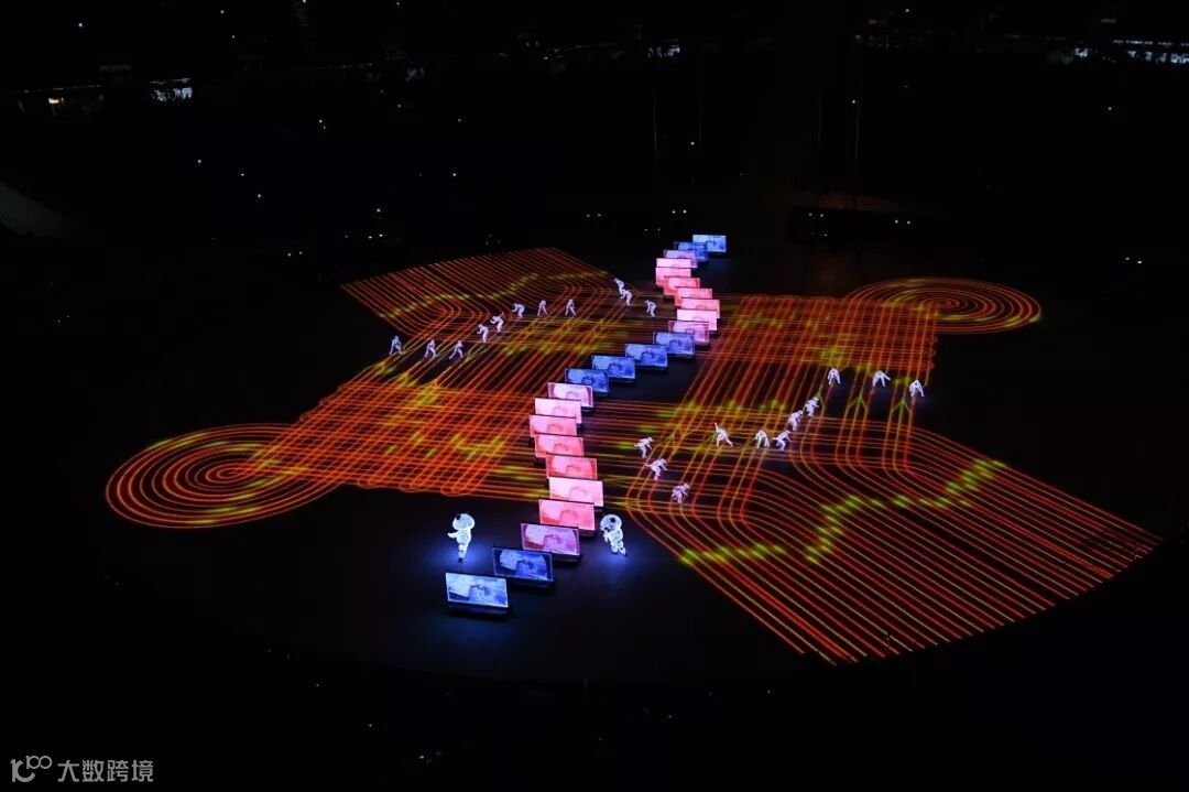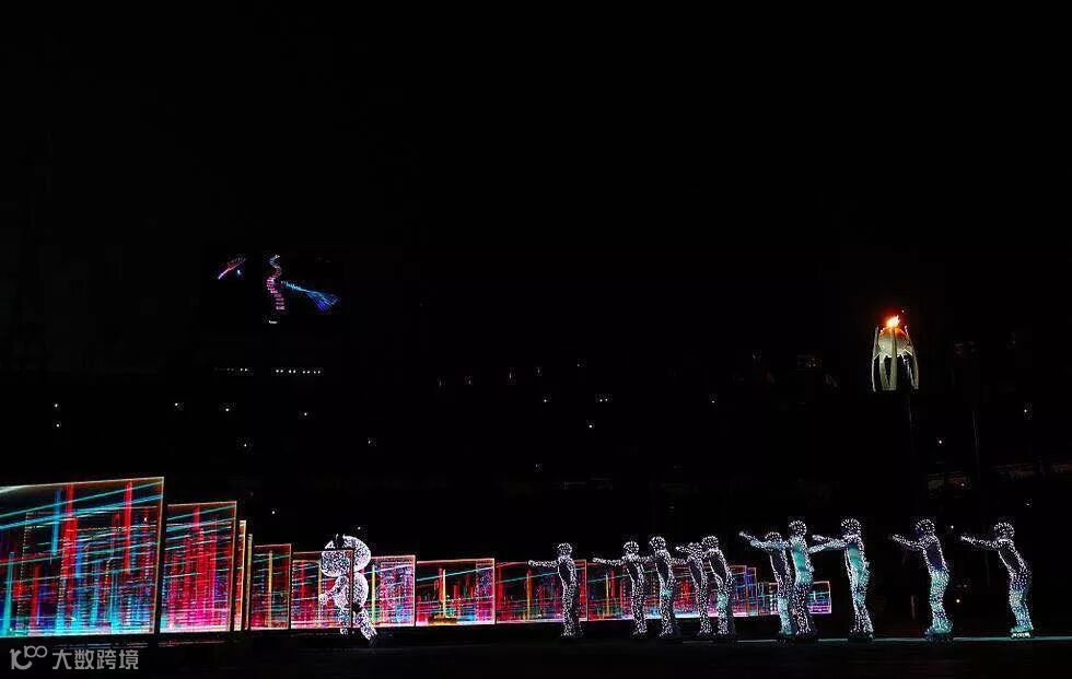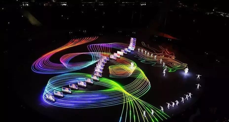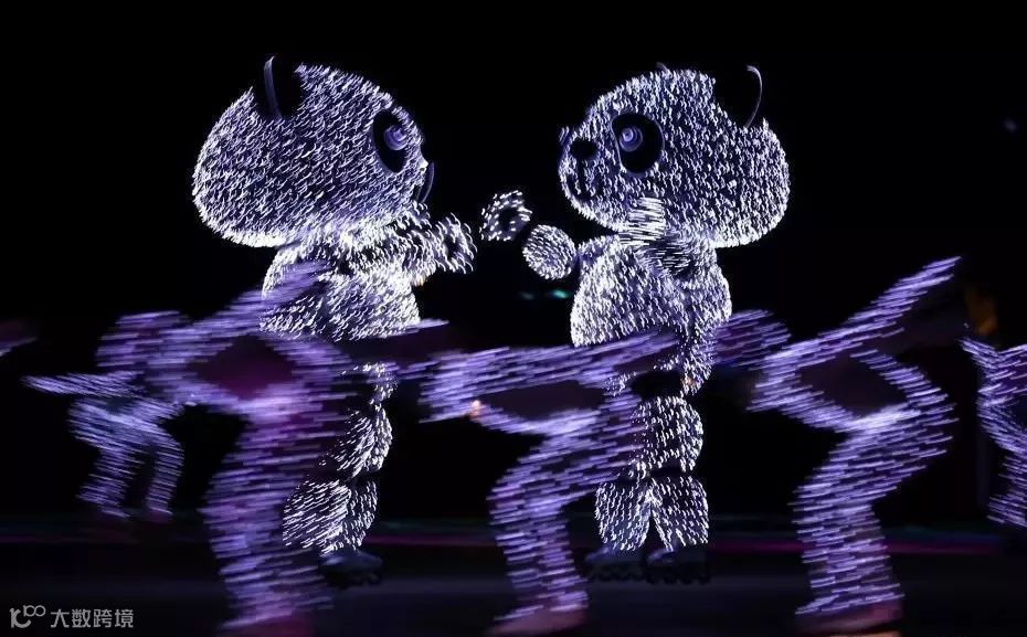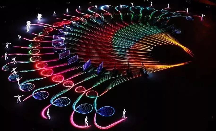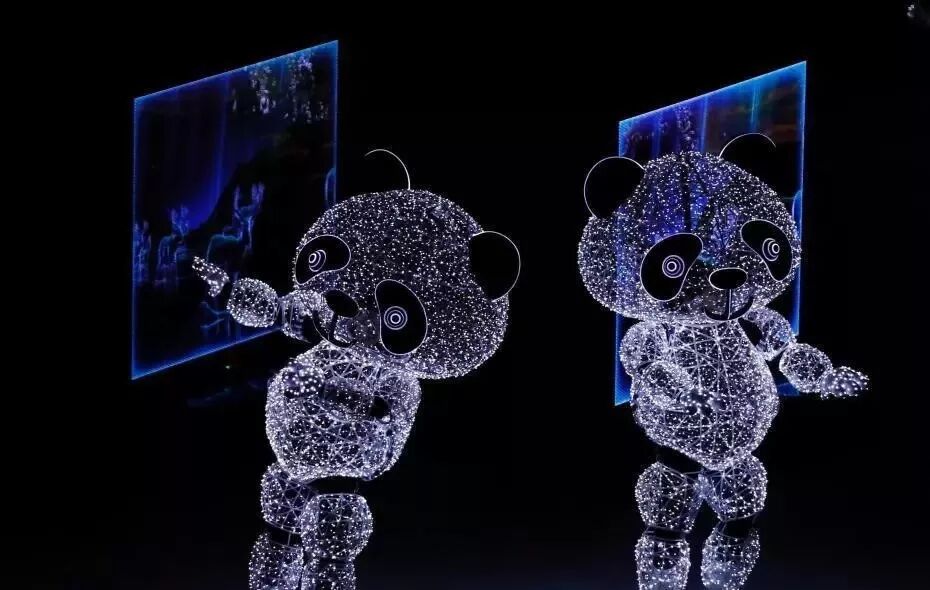 大家可以看到机器人身上装载的大屏幕使这次表演十分炫酷,移动的机器人,流动的画面形成了多层次,递进式的现场效果。为了体现冰雪主题,这些大屏幕也使用了新技术,最终打造成像冰雪一样效果的“冰屏”。