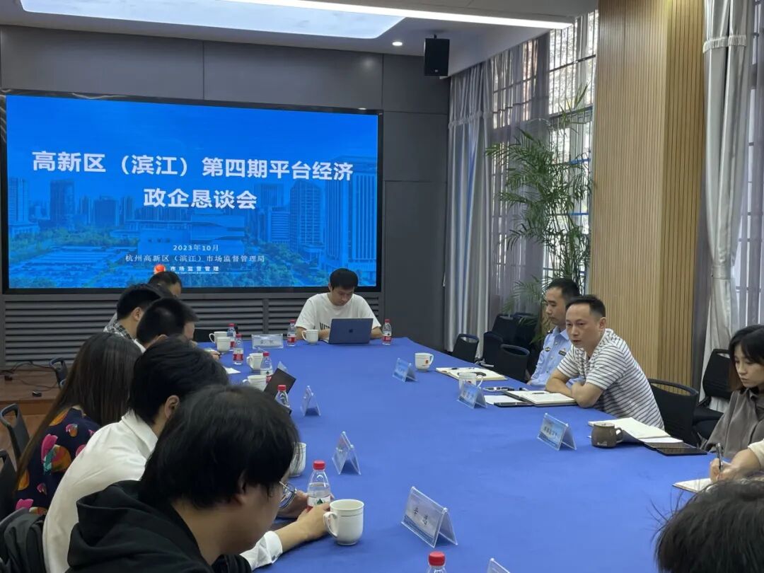 2023年10月18日,杭州市滨江区市场监管局召开2023年度第四期平台经济政企恳谈会,阿里巴巴、宸帆、交个朋友、谦寻、辛选等全区主要平台企业及直播企业负责人受邀参加。