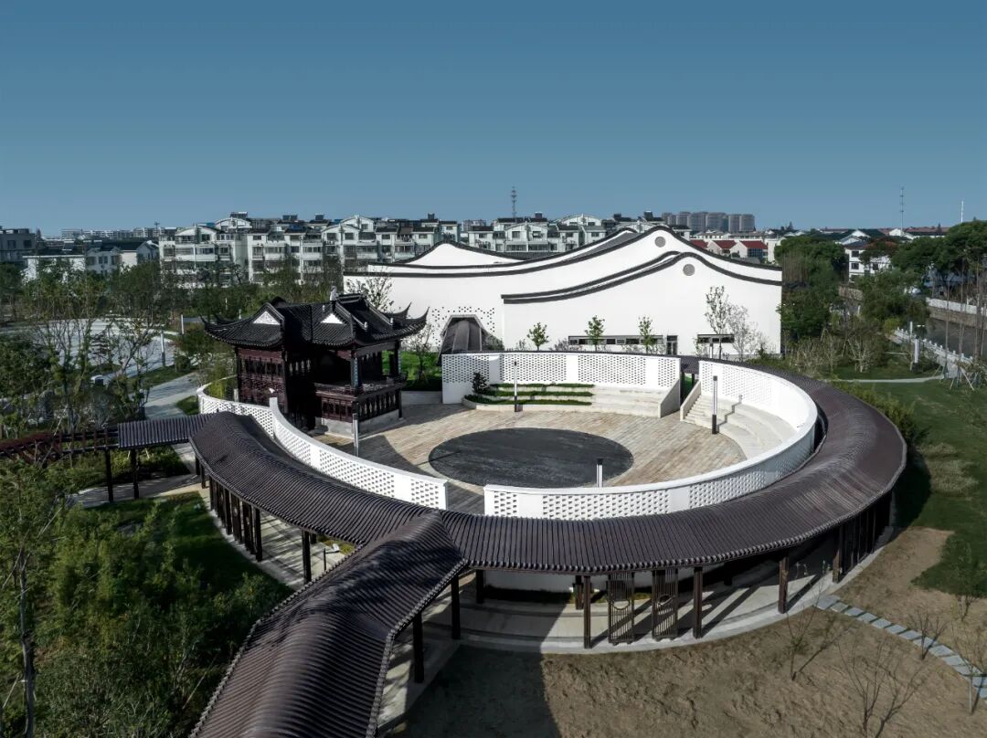 本项目由苏州评弹公园、黄埭评弹博物馆、黄埭百年书场、党建活动中心、停车场组成,集演艺、办公、餐饮、市民活动于一体的公共活动场所。