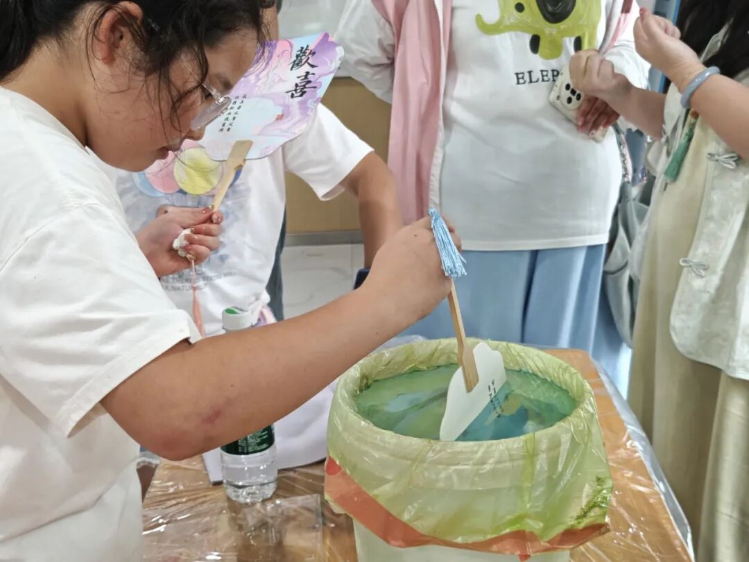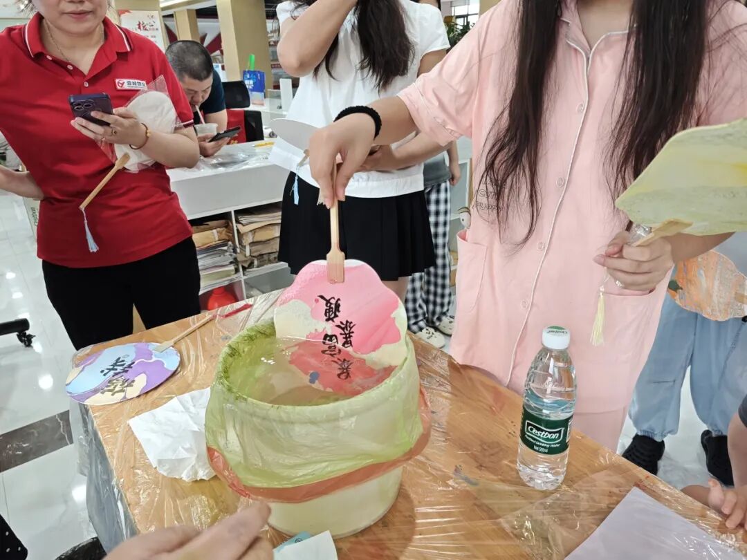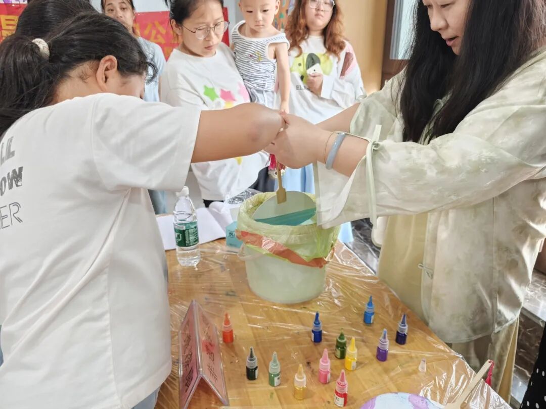 靛蓝、朱砂、金粉在清水中流淌,孩子们踮起脚尖调色,家长执扇轻旋,在老师指导下调漆、绘制,创作出独一无二的扇子。“既能纳凉,又能感受传统文化,太有意义了!”小朋友们纷纷表示。