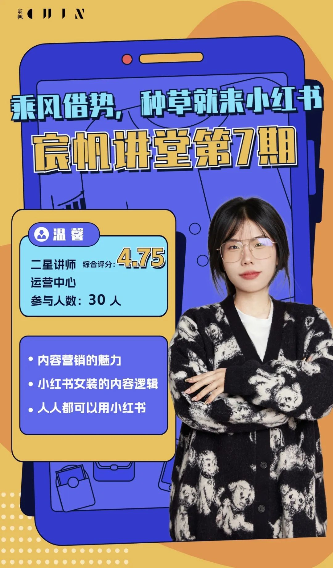 为学习小红书的正确打开方式,了解小红书女装的内容营销逻辑,宸帆讲堂特邀运营中心的老师,分享《乘风借势,种草就来小红书》。老师用风趣幽默的授课方式,与学员高频互动,对小红书的使用方法与内容营销不断探索,获得小伙伴们好评!