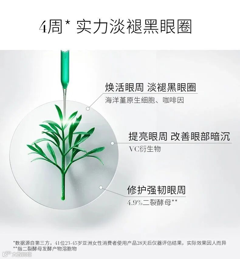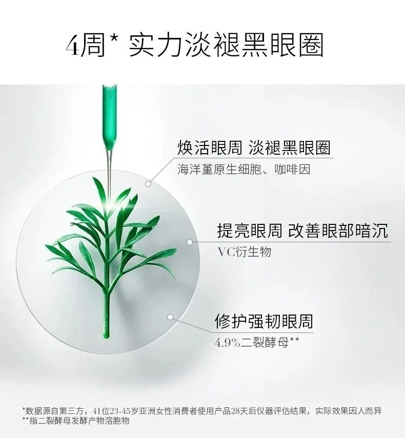 其中蕴含的海洋堇原生细胞和咖啡因能够在日常使用中焕活眼部肌肤,
