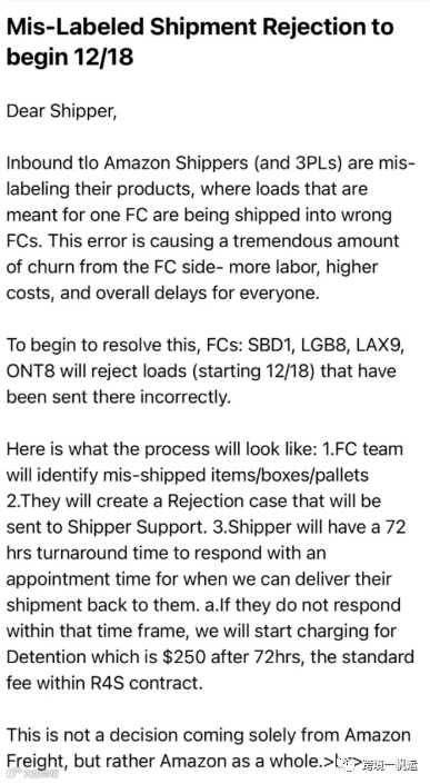 有卖家告诉小编,亚马逊从12月18日开始整治送仓乱象,并发布了通知,通知大意如下: